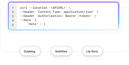 Integrate dubbing, subtitles, and lip-sync directly into your workflows.